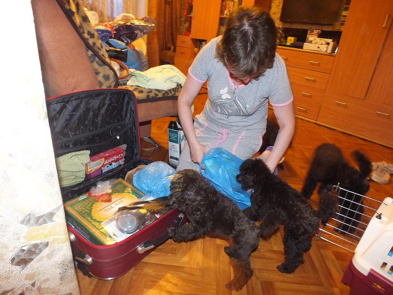 Как ни собирайся, что-нибудь оставим. Ошейник Киви, поэтому Юле (Лори) необходимо приехать за ним. А еще мы забыли доки забрать для оформления чемпиона Казахстана.