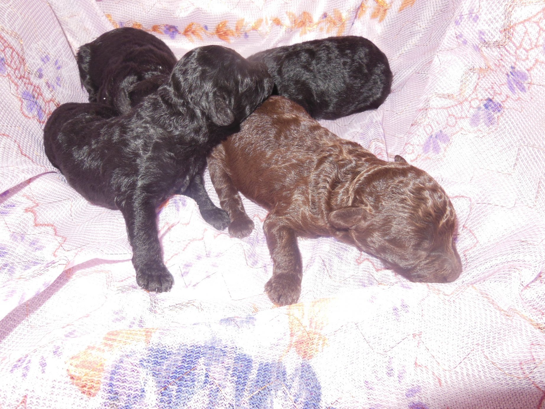 вчера ходила смотреть щенков от ромашки и сделали маленькую фото сессию. Это правнуки. Жалко . что детишки будут без документов. В свое время----поленились. Три черных и один темный шоколад. Удачи этим ребятишкам.