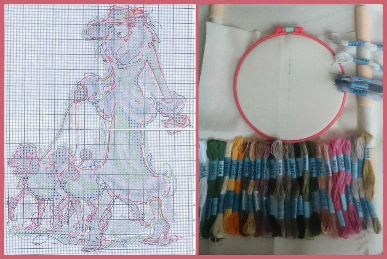 Я наконец-то закончила вышивку "Дама в зеленом...Prancing Poodles"