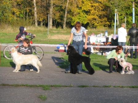 Рококо,спасибо,так фотку гораздо лучше видно. А у нас во Владивостоке в субботу и воскресенье проходили Регионалка(эксперт Сенашенко) и Всероссийка(эксперт Горохов).Под Сенашенко я показывала только Любу и ее дочь Бони.Получили соответственно ЛПП и САС ПК.А в группе,как это уже стало противной традицией,Люба получила............пинка под зад........блин.......Хотя Сенашенко меня успокаивала,обвинив во всем звезды.Ну и бог с ними ,с ентими звездами....,в любом случае Сенашенко была просто душечкой В воскресенье я показывала четырех пунделей своего разведения" Из Ворожеи" и еще одну особу,доставшуюся мне ,как алиментную.Итог три ЛПП .Боняша закрыла Чемпиона последней САСкой ,и алиментная плучила отлично без места.В группе два моих ЛПП вылетели сразу ,а Любу выбрали в финал в группе одной из пяти соб и ессссссссно,потом дали ...пинка.А Горохов так расхваливал Любу.Даже мне" лапшу на уши навесил",что я имея грандиозные габариты,просто летала по рингу.Вот нельзя слушать мужчин...,всяко,обманут.Улет ели мы из группы.........ни с чем