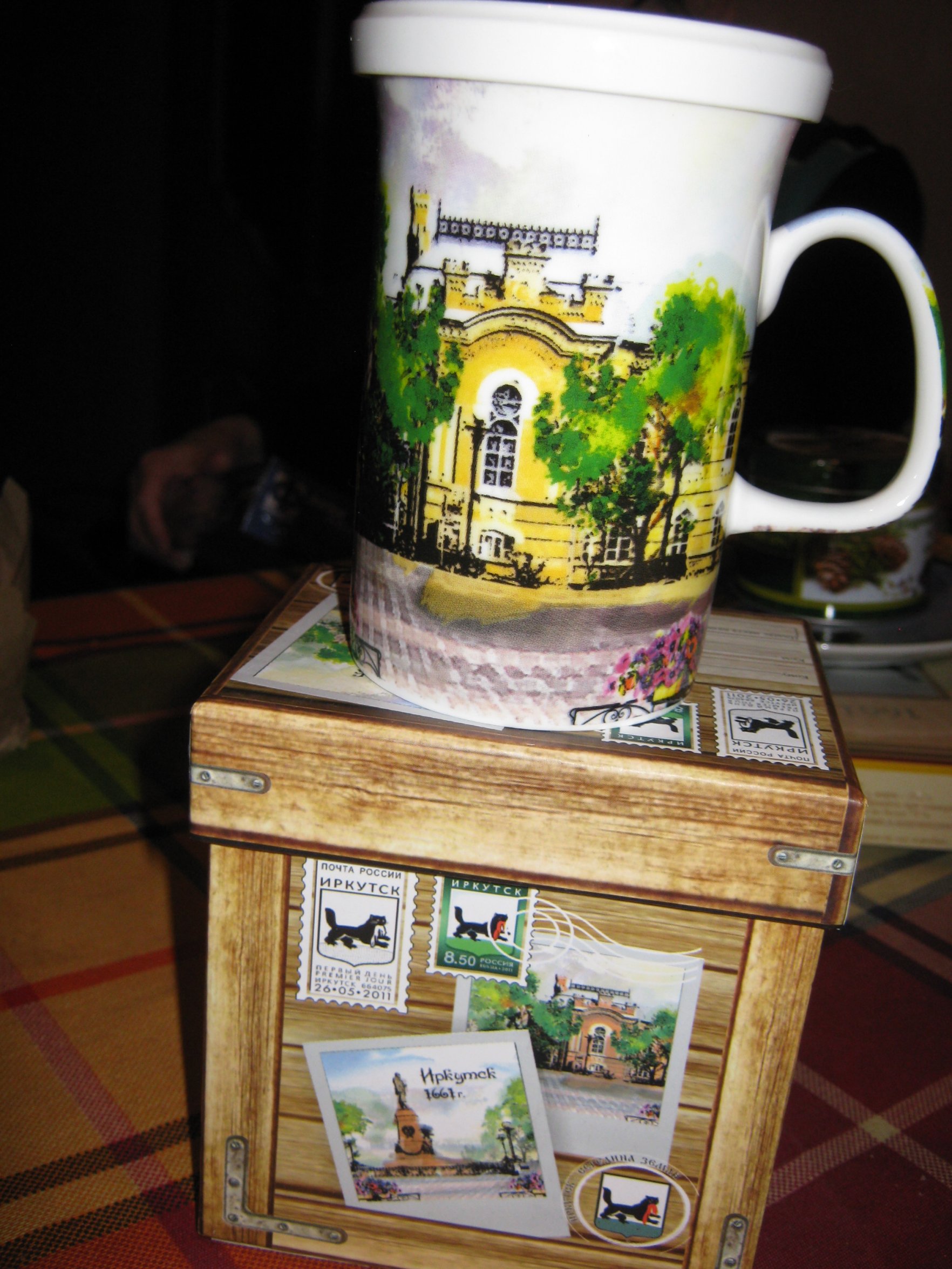 Потом я вытащила из чумадана сувенирную тарелку с Байкалом, кружку и ложку с Иркутском и зеркальце в оправе из бересты