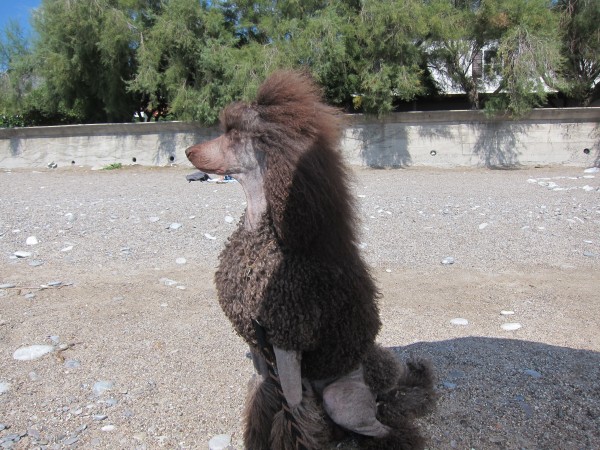 Молодой коричневый кобель сейчас чрезвычайно успешно выставляется в России, получая самые лестные( а на моно прошлогодних БН просто восторженное) описания от современных авторитетных экспертов. Его элегантность отмечает множество пуделистов, видящих его на ринге. Он уже несколько раз обыгрывал в сравнении черных и белых прекрасных собак.