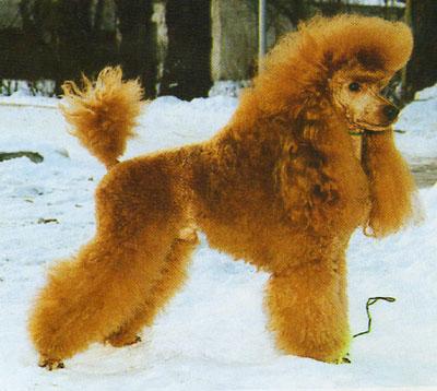 Но, наверное, не стоит причислять Балинго к настоящим красным - это был чрезвычайно яркий, сочный, какой-то сияющий рыжий окрас. Пигментация носа, век, подушек лап, когтей, мошонки - чернущая. С возрастом он светлел как абрикос - без изменения окраса, а только слегка осветляясь. Даже светло-абрикосовые потомки Балинго давали в парах с нормальными абрикосами - ярко-рыжих, таких же сияющих рыжих потомков. А вот ШЕЛТОН, скорее всего, был все-таки красным. Красными были некоторые пудели из питомника фон САЛАНА, некоторые, но не все потому, что часть их тоже были в молодости ярко-рыжими, постепенно становясь с возрастом хорошими яркими абрикосами, но не рыжими и не красными. _______________________________________