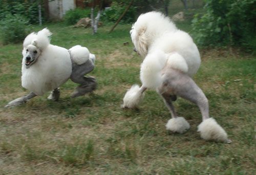 У меня 1,5 года было 3 больших пуделя, 2 блондинки и брюнет. Так вот, всеми все равно заправлял карлик Зями. _______________________________________