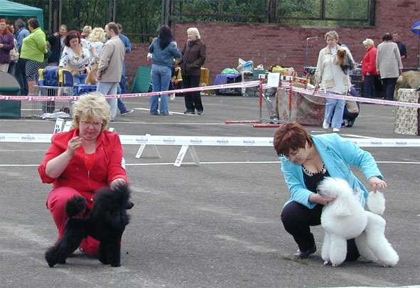 Фотографий мало и у меня их немного, но все-таки есть чем поделиться. Все фото сделаны в первый день. Во второй день к моменту экспертизы пуделей было уже пекло, потом неразбериха в ринге и под конец проливной дождь! Что-то было не до фото...