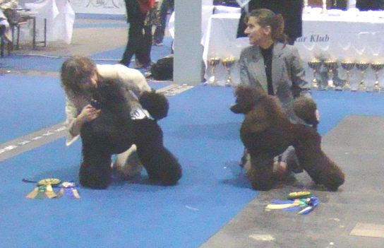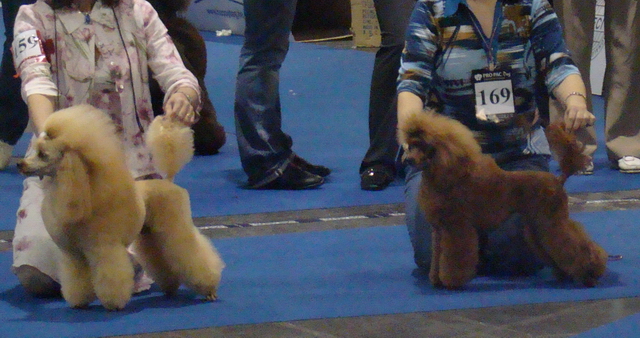Было очень приятно болеть за всех вас в бэстах и рингах! Внесу свою лепту... К сожалению фотографий очень мало и не все из них смотрибельны. Моно пуделей. Сравнение на лучшего белого большого. Лучшая сука и лучший ветеран-кобель (в шнурах). |