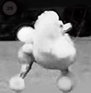 Но можно нарисовать и так, как нарисовала я, и это имхо будет не таким уж плохим строением переда. То есть я позволила себе представить, что под гривой у маленького белого пуделя то, что я нарисовала. Я хотела сказать, что имхо это фото не исключает правильного строения ( хотя, аозможно, я ошибаюсь - в конце поставила три вот таких смайлика ). В случае с Мотей от меня требуется ТОЧНО УГАДАТЬ то, что на самом деле. Потому что есть фото его движения в этой же фазе в бритом виде. А считаю, что угадать это НЕВОЗМОЖНО.