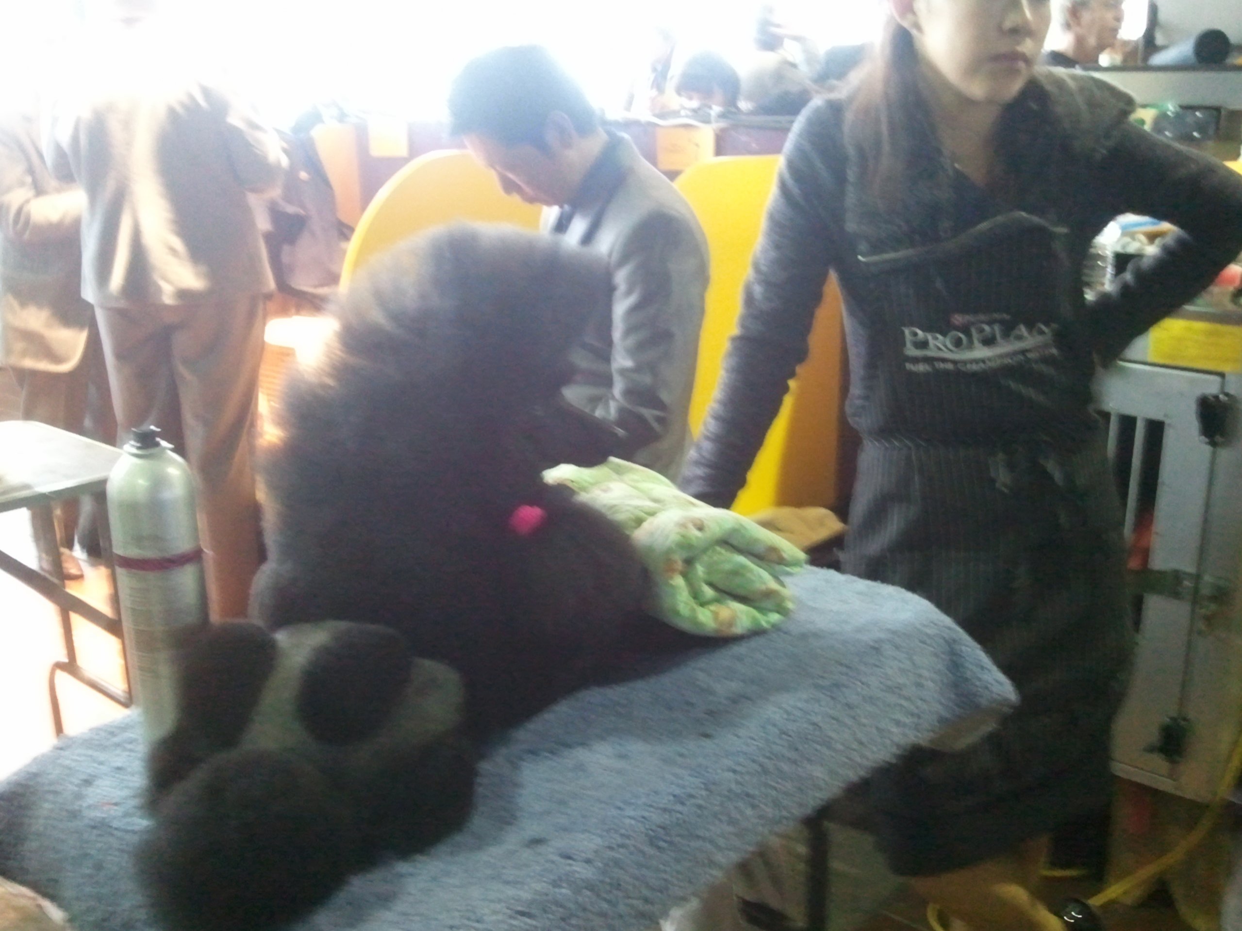 Если посмотреть,как она умещается на небольшом грумерском столе, то вполне можно прикинуть какого она росточка.