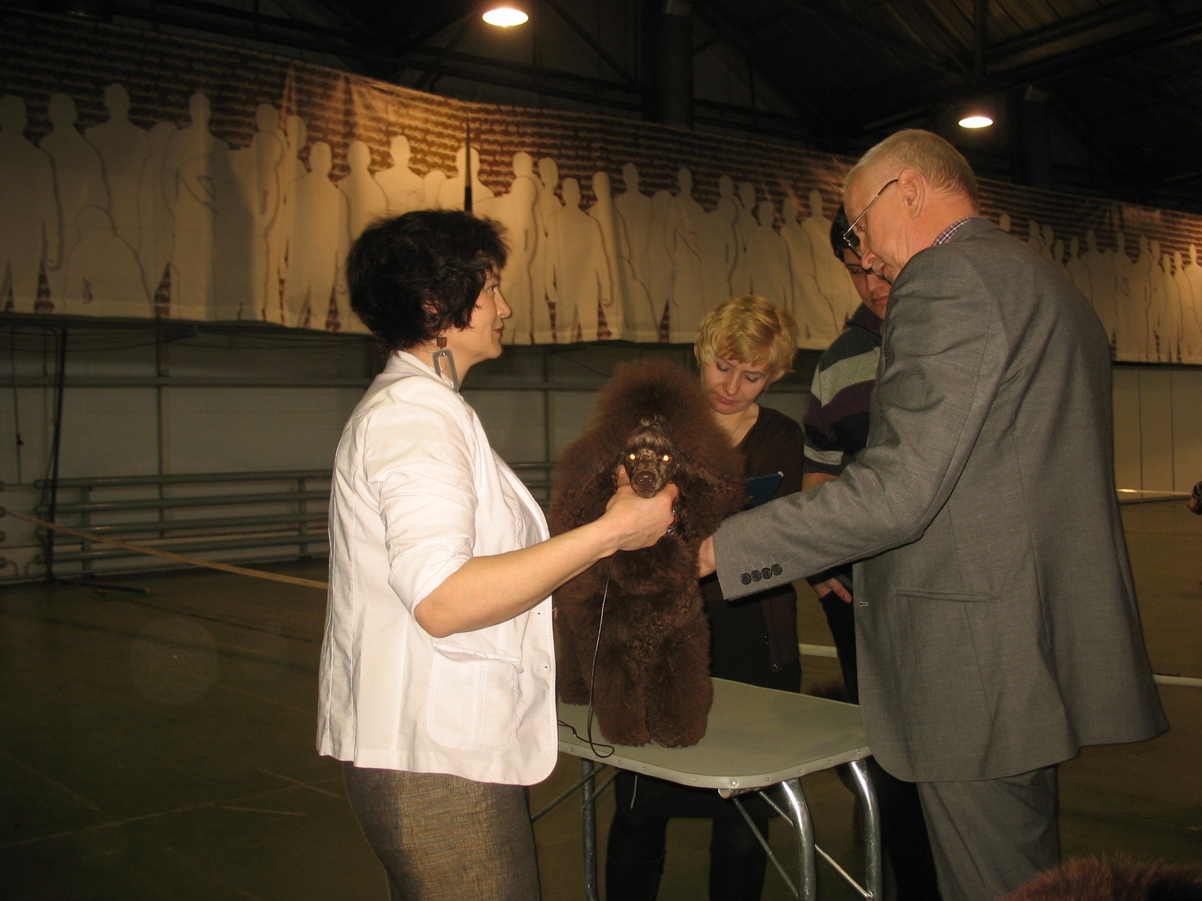 В кадр только Вика Абрамова не попала-главныйфотограф:) Юль,у нас ещё и серые есть ;) только до них руки не доходят.На коричневых несколько желающих есть вроде.А вот на серых и рыжих пока-никого :( Белых карликов,тем более спортсменов-точно не будет,поэтому бери серую.пачкаться будет меньше белойК Гале как то не вовремя клиенты пришли щенка смотреть идолго смотрели на Снежу,давно не купаную и задали нескромный вопрос "а какого окраса мама,серебристая?"Свежекуп ный белый-просто красавец,согласна!Но постоянно таким поддерживать сложно.Так что подумай про серебристую ;) |