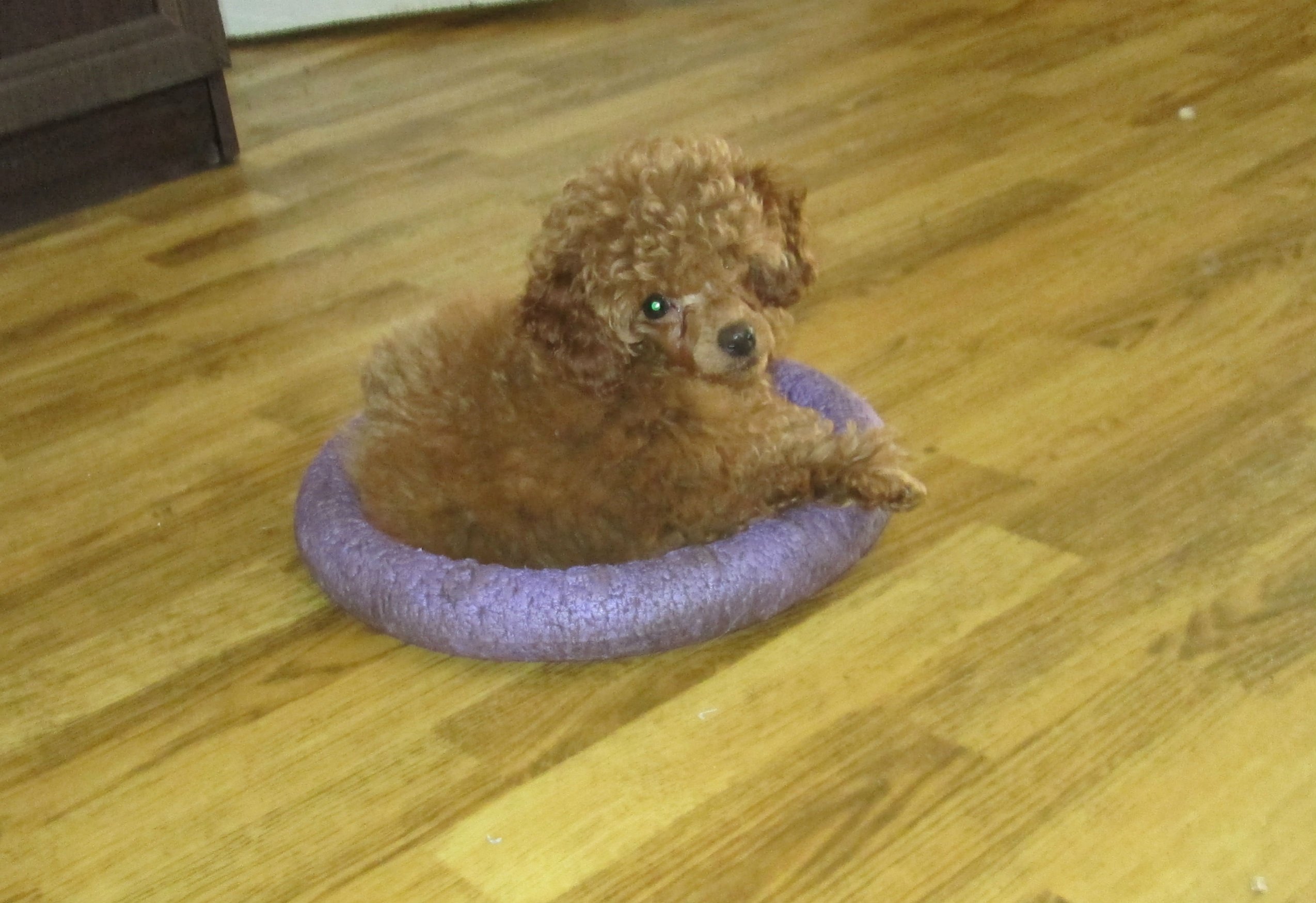 Ну,а щенки продолжают меня удивлять.Я то думала-пуллер игрушка для моих больших,ну один помёт малышей в нем спал-ан нет!молодое поколение делит его опять!