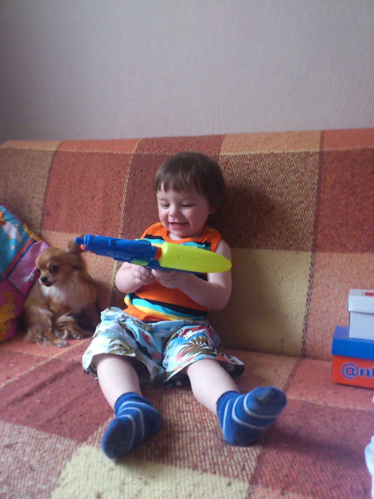 Оленька, какой Николаша большой уже! встречает днюху "во всеоружии")))