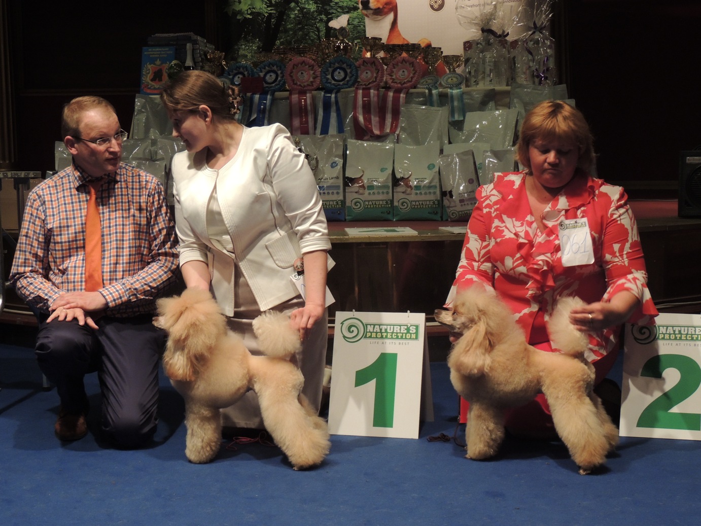 Varite, Спасибо за поздравления Кате и Джолли Стар Итти Битти Притти. Я тоже их от всей души поздравляю с ЛПП на Националке в абрикосовой миниатюре. Притти была как куколка. Маленькая, компактная, очень хорошо подготовлена и выставлена. Татьяна с Притти были номинированы экспертом на конкурс груминга "Лучший грумер". Если получится с дачным интернетом, то сейчас вставлю фото. _______________________________________