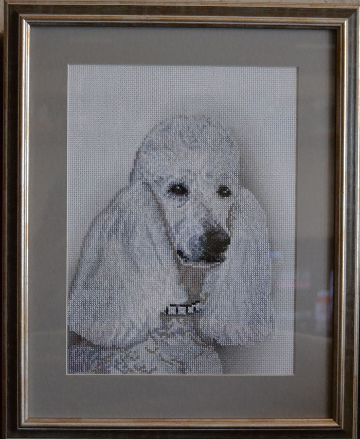 Пудель, авторская канва, большая работа получилась с рамкой.
