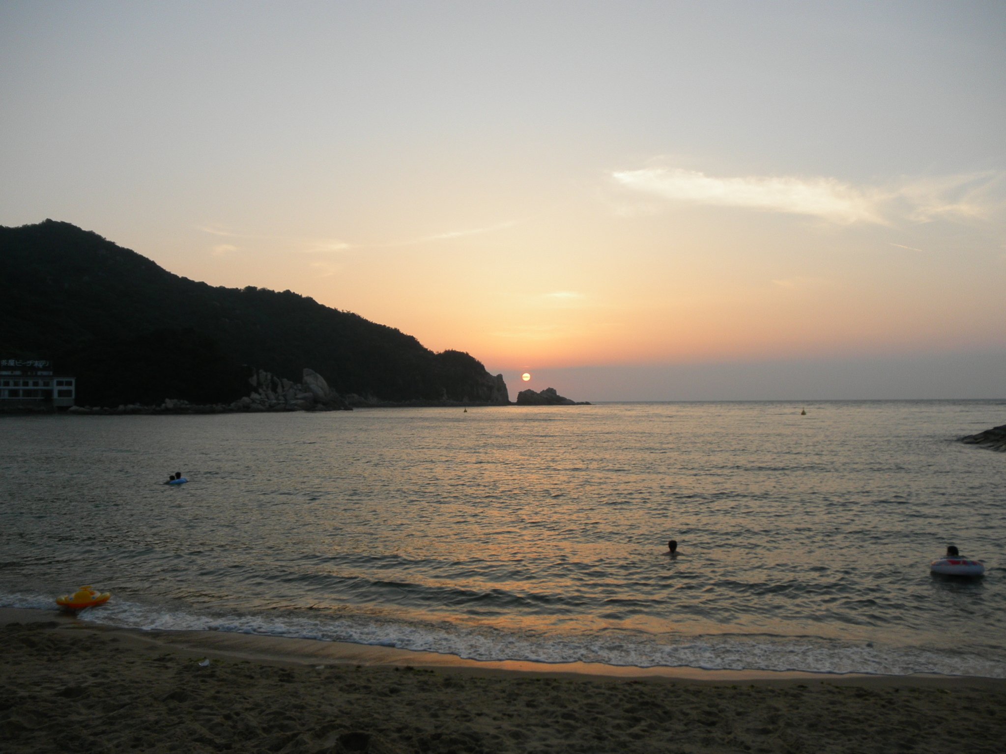 Два дня были на море. Один раз заехали окунуться вечером, после поездки по делам. Точка без круга в воде - это я.