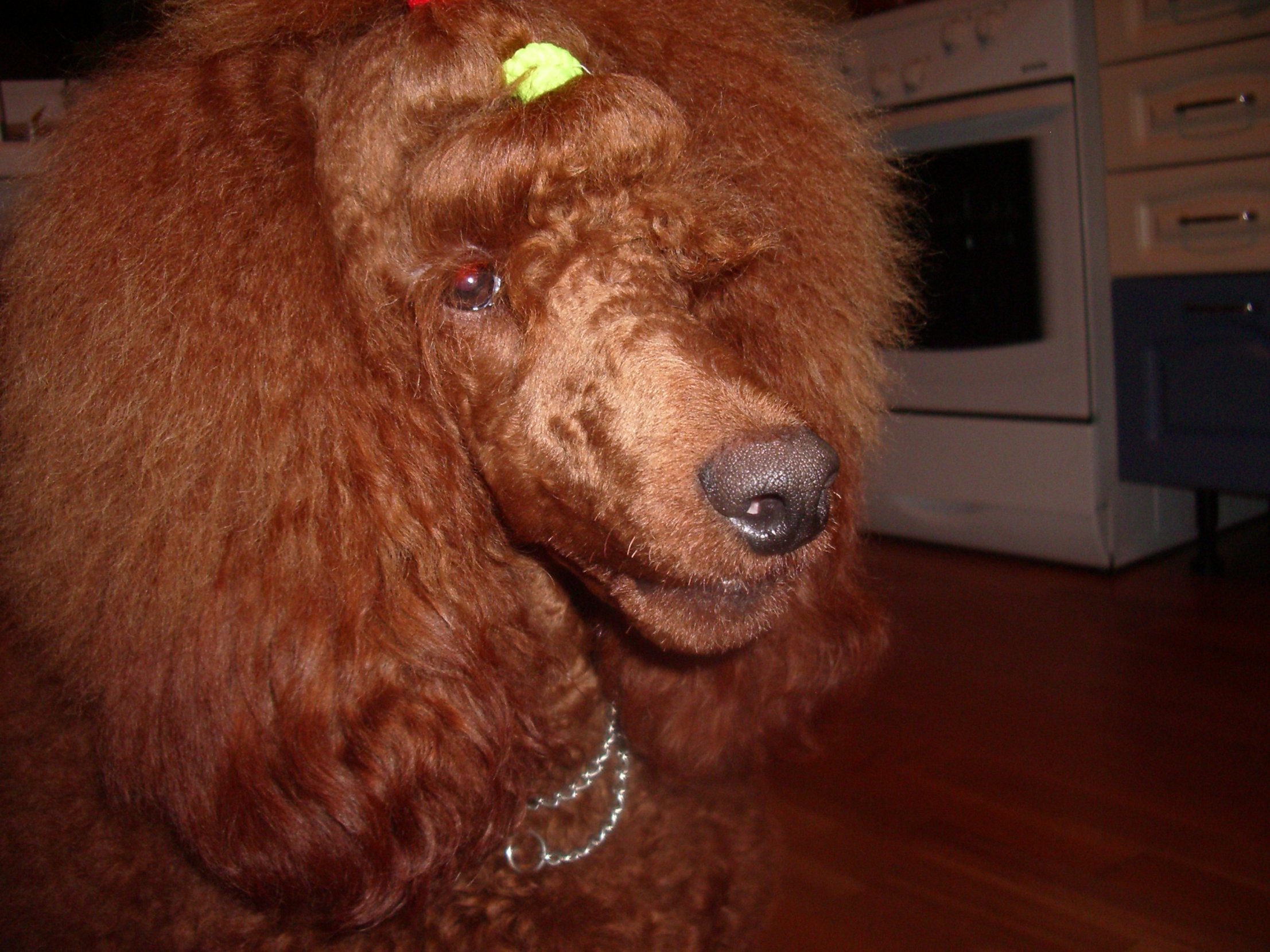 Это фото сильно окрас осветляет. Наши пуделисты местные по фото тоже пророчили, что окрас будет типа "крем", а при личной встрече в живую на выставку убедились, что он нормальный обычный абрикосик, к тому же еще окрас набирает, от корней растет шерсть поярче. А морковку обожает, я ее на терке натру, добавлю немного нежирной сметанки и творожку, ммм... лопает только так.