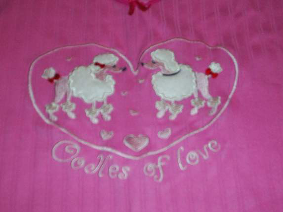 А это рисунок на ночнушке поближе – два влюбленных пуделька (почему-то в одно сообщене сразу несколько фотографий прикрепиь не могу? и еще какие-то они у меня огромные