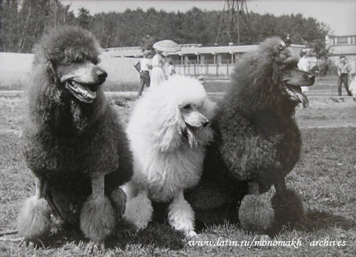 слева - ВАН МИЛОРД вл.Синикаева (большой,серый) в центре - ШЕР АМИ вл.Кудрявцева (малый, белый) справа - ИЛЮСИЯ АГАТА вл.Кудрявцева (большая, коричневая) Битца - 1984 год. _______________________________________