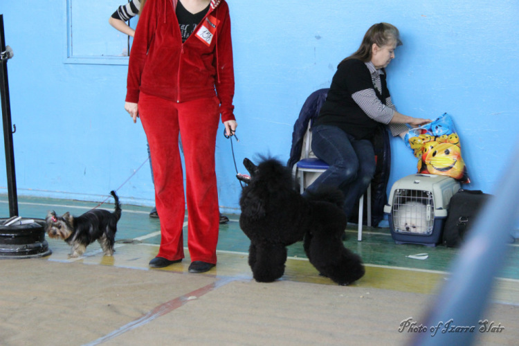 Ну, с ноябрьской выставки вот поставлю, с интернетов возьму - он как раз ЧР закрыл там. И в группе что-то занял, не первое правда место. На фото мы как раз к выходу в ринг готовимся - как можно заметить мы (голова моя правда в кадр не влезла, ну так этож собачники щёлкнули - сами понимаете что в фокусе) с Лохматиком стоим и общаемся, топнот я ему не начёсываю нифига... Такой уж у меня подход к выставкам. Не профессиональный.