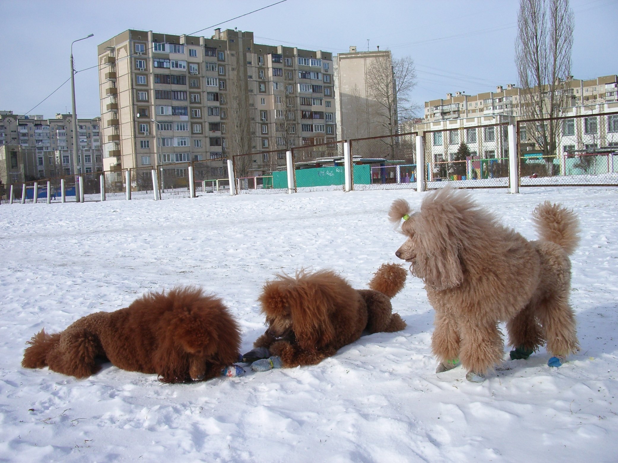 Очень хочу второго пуделя)), НО.... Есть у меня одно "НО", которое меня останавливает ( пока останавливает). Когда гуляю с одним барбосом, то голова вертится на все 360 и если есть опасность, в виде неадекватов с злыми собачками без поводка и намордника, то моя собачка перекочёвывает ко мне на руки и мы благополучно уходим гулять в другое место, а если я заведу второго барбоса, то как быть в случае реальной опасности ... двоих на руки не поднимешь((. Понятно, что всего не предусмотришь, но такая ситуация не выходит из головы. Случай буквально недельной давности..гуляли два шпица и на одного неожиданно накинулся (выбежал непонятно откуда) джек рассел терьер. Хорошо, что шпиц был очень пушистый и обошлось только выдранным клоком и без дырок в шкурке, но хозяйка реально растерялась и ситуация разрешилась только тогда , когда подбежала хозяйка терьера.
