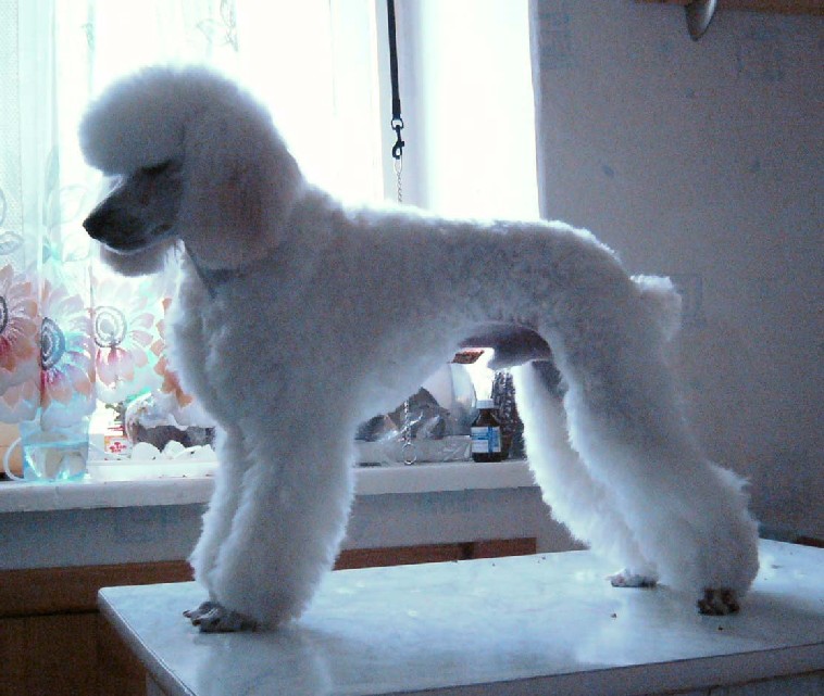 Хозяева тоже живут в частном доме, и пес весь год живет на улице. Грязи здесь нет, поэтому собака бывает разве что, мокрая иногда. Почему многие здесь заказывают такие варианты стрижек, для меня до сих пор загадка. Меня здесь однажды попросили подстричь ньюфа под машинку! Видите ли ему жарко, хотя у владельцев бассейн! Я отказалась, я не представляю бритого наголо ньюфа. |