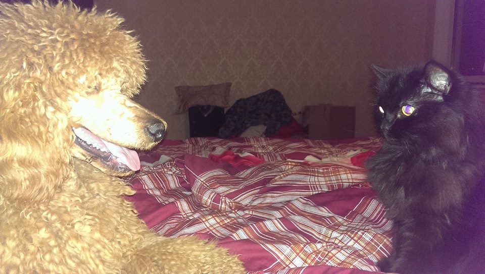 Первый день в нашем доме была шокирована обществом,но вот спустя пару месяцев,не смотря ни что уже сама укладывается под тёплый бочёк)))
