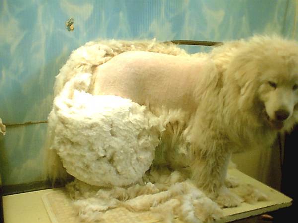 Тут вон сука лежачая совсем, иногда под себя ходит, моеться и сушиться феном по три раза на дню, пеленочка меняеться, чтобы не дай бог не пахла и не прела. Так еще и бритая ножом в 5мм. А тут - вполне здоровые животные и в таком жутком виде.... Бррр.... Самим хозяевам не противно? Я бы Законы по защите животных к таким применяла бы. По жалобе груммера - штраф впаивать за издевательство над животными.