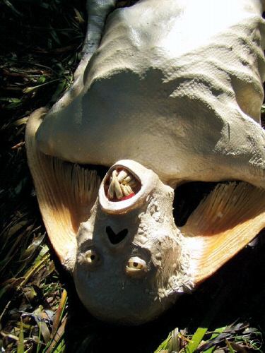 В Японии показывали передачу про подобные "чудеса", там каких только древних химер небыло! В основном, передающихся со старины по наследству или купленных как диковинки. Все они, при тщательном исследовании, оказывались подделками, сооружёнными из разных частей животных, птиц, рыб и растений. Парень наверняка знает, что это муляж, просто с него какой спрос - он же написал: нашёл! Вот так шёл-шёл и нашёл :) А что это такое - не знаю...... Купил это красавицу наверняка кто-нить просто как прикол, украшение для ресторанчика возле моря или бара какого-нить с морской-рыболовной тематикой..... Это ж интересно, посетители повалят поесть-поглазеть :) _______________________________________