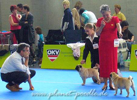 Что касается К.Хорака - супер эксперт, в плане - видиния животных! Отсутсвия какого-либо зуба не допускает ВООБЩЕ - снижает оченку.. Зубы считает пальцем! Чтобы исключить "приклеивание" на стоматологический клей.... Любит крепких, костистых (конечно, сообтветственно размеру!!!!), с хорошим форбрустом и грудью собак, честно скажу - видимо, часто читает стандарт, но не упускает и моднх тенденций в породе..... ведет себя правда, отвратно, не скупится на ненормативную лексику, действительноползает чуть ли не под собакой, особенно при сравнении... груб с хэндлерами, вообще, очень сложный эксперт.... удачи Вам девочки под ним!!!!!!!!!!!! _______________________________________