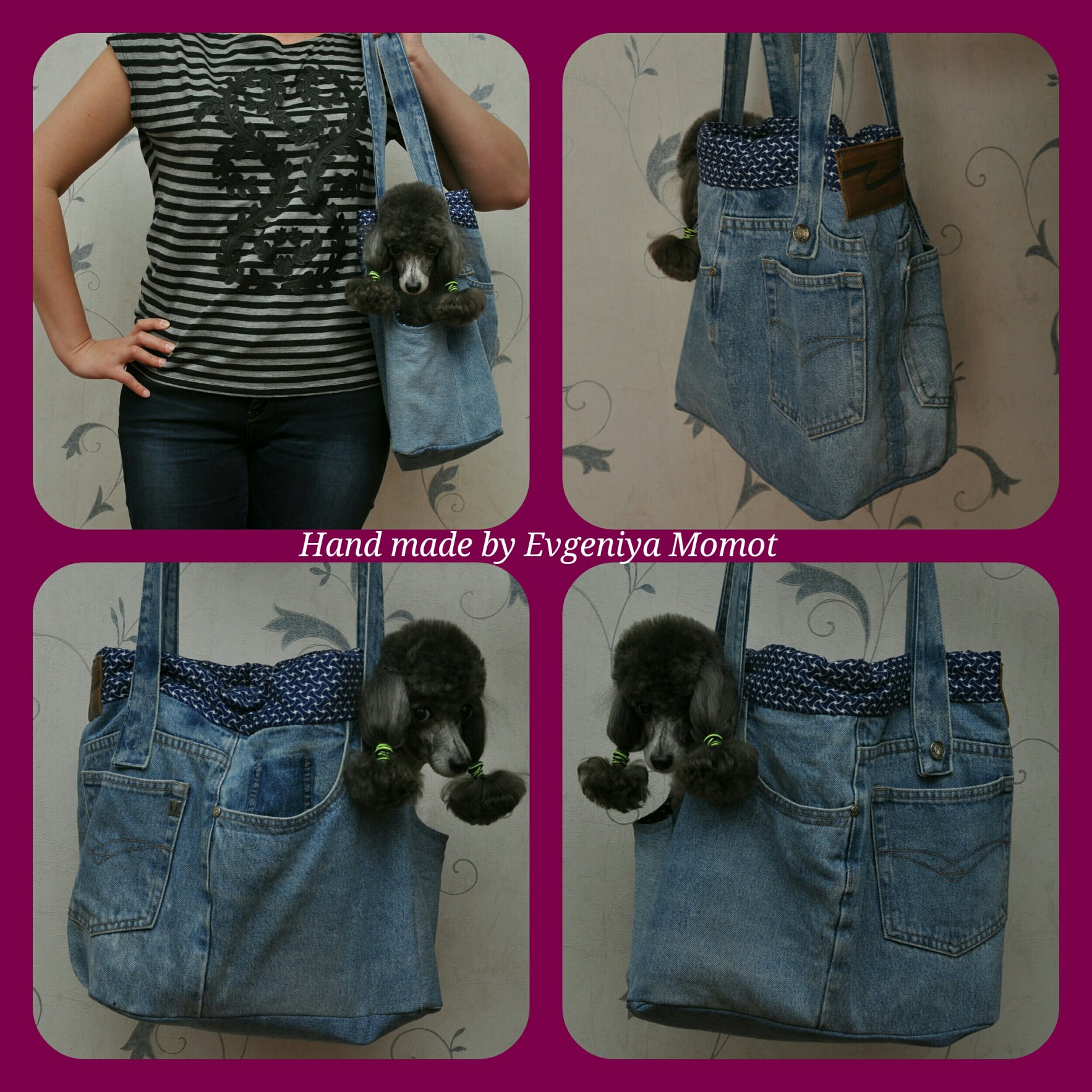 Сумка переноска для собаки из верха джинс, и кусочков от штанин.