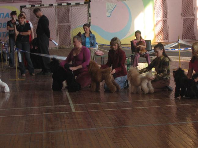 Рококо,спасибо,так фотку гораздо лучше видно. А у нас во Владивостоке в субботу и воскресенье проходили Регионалка(эксперт Сенашенко) и Всероссийка(эксперт Горохов).Под Сенашенко я показывала только Любу и ее дочь Бони.Получили соответственно ЛПП и САС ПК.А в группе,как это уже стало противной традицией,Люба получила............пинка под зад........блин.......Хотя Сенашенко меня успокаивала,обвинив во всем звезды.Ну и бог с ними ,с ентими звездами....,в любом случае Сенашенко была просто душечкой В воскресенье я показывала четырех пунделей своего разведения" Из Ворожеи" и еще одну особу,доставшуюся мне ,как алиментную.Итог три ЛПП .Боняша закрыла Чемпиона последней САСкой ,и алиментная плучила отлично без места.В группе два моих ЛПП вылетели сразу ,а Любу выбрали в финал в группе одной из пяти соб и ессссссссно,потом дали ...пинка.А Горохов так расхваливал Любу.Даже мне" лапшу на уши навесил",что я имея грандиозные габариты,просто летала по рингу.Вот нельзя слушать мужчин...,всяко,обманут.Улет ели мы из группы.........ни с чем