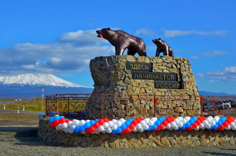 Памятник «Здесь начинается Россия» изображает медведицу с медвежонком. То, что их решили увековечить – не зря, ведь медведи по праву считаются визитной карточкой Камчатки. Медведи символизируют не только Камчатку, но и всю Россию, а камчатским жителям памятник напоминает, что они не оторваны от материка.