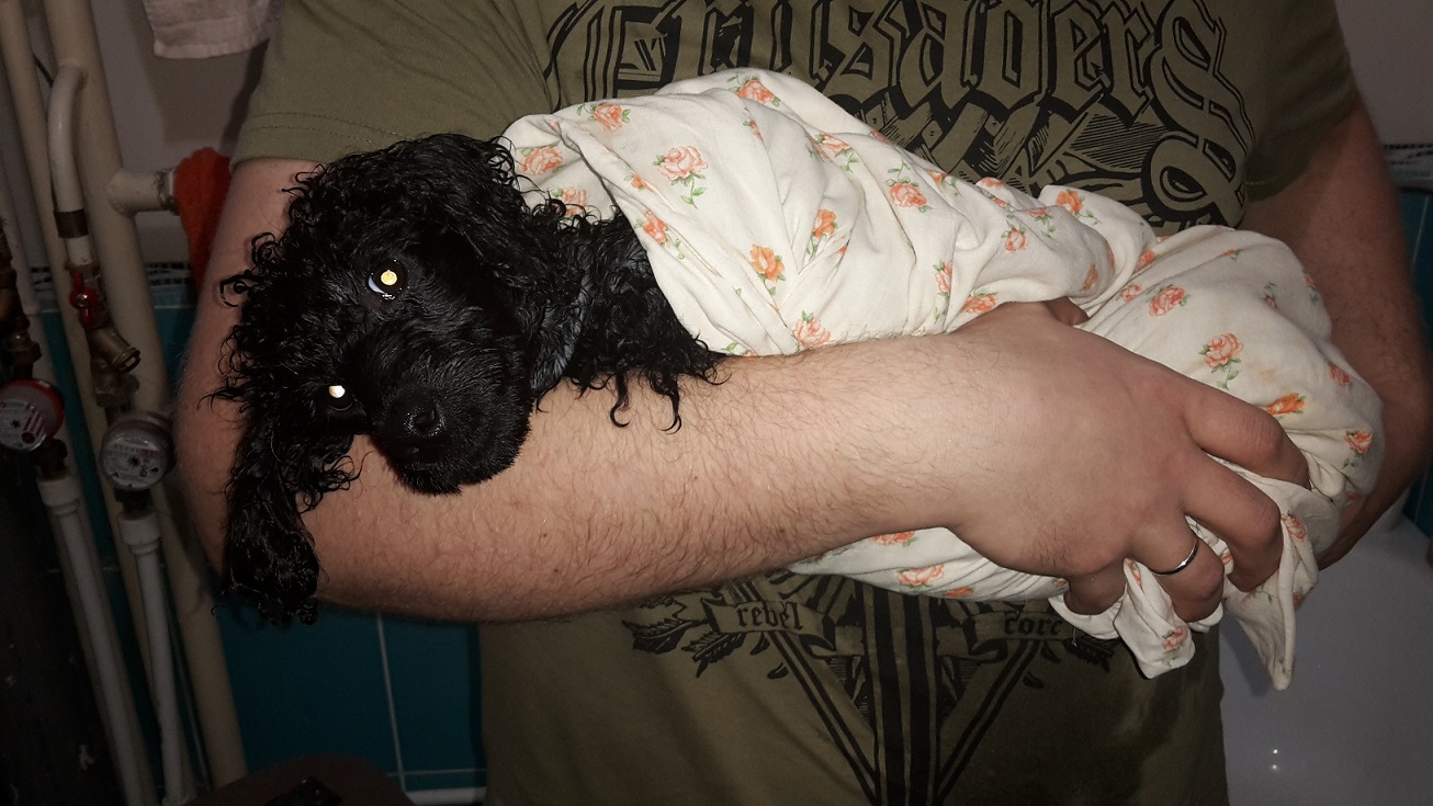Немного расскажу про свою чернушку :) У Суламифь первые успехи в обучении: мы выучили команды "ко мне" и "сидеть". Мячик приносит и так, без команды "апорт")) Но командой действие я все равно подкрепляю. На днях стирала постельное белье. Пока его развешивала, Сула забралась в пододеяльник, запуталась в нем и пыталась оттуда найти выход. Такое мини-привидение в пододеяльнике))) А еще у нас в микрорайоне проводят конкурс на самого очаровательного домашнего питомца - "Усатые, хвостатые и прочие очаровашки", и мы решили тоже поучаствовать. Вот такой стишок я написала про свое мохнатое солнышко: Осенним и дождливым днем К нам чудо постучалось в дом, Игриво тявкнуло с порога, И полетели кувырком: Носки, подушки, сапоги, Очки, шарфы — ну хоть беги! Теперь у нас одна дорога — Щенок уселся у ноги. Его не сдвинешь, не стряхнешь, Он теплый, словно брюки-клёш. Он смотрит преданно в глаза, И ждет, что на руки возьмешь. С ним в доме стало веселей, Прижмется к боку — мне теплей, Ну а к тому, что егоза, Привыкнуть надо поскорей. В нем столько верности и ласки, Пушистый эльф из старой сказки. Несется за мячом, как лев! Жаль, не хватает крохе каски. А после праведных трудов С разбегу спать — клиент готов. Дойти до места не успев, Уж видит сон про всех котов. Устав, храпит без задних ног, Как настоящий собайог: Уснуть в «собаке пузом кверху» Не каждый йог, наверно б, смог. Так и живем с моим щенком, Пусть кувырком, но все пучком! :) До 5 ноября будет идти голосование, поэтому если стишок и фото вам понравились, можете поддержать нас в конкурсе :) Голосовать можно не больше 1 раза в день с одного компьютера: http://academdom.ru/konkurs-yusatye-hvostatye/ Наш пуделино-человечешный дуэт скрывается под именем "Кочура Екатерина". Если нажать на значок фотоаппарата рядом, то станут видны наши фото и стишок. |