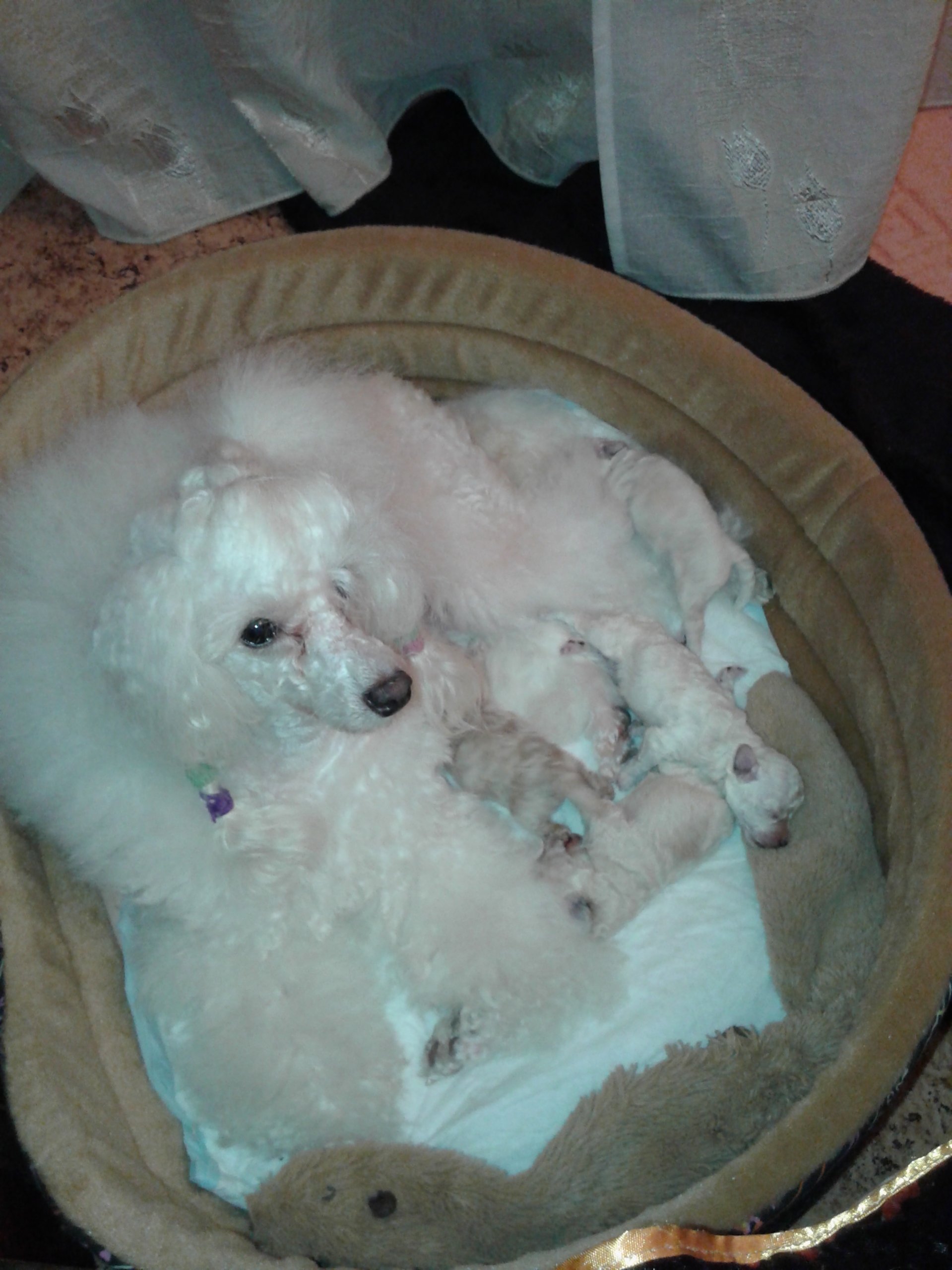26.10.15 появился на свет помет миниатюрных и той пуделей белого окраса на букву " К..."Родились 3 с. и 1 к.