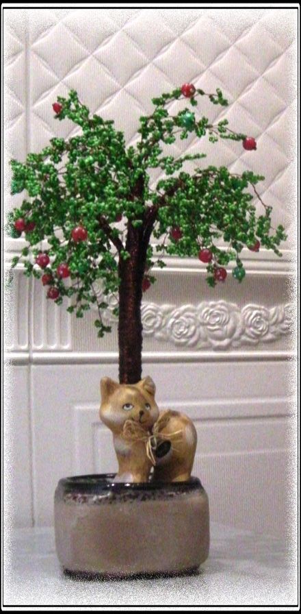 Надин, как я рада,что подарочки Вам и вашим девчонкам-пуделёнкам подуше пришлись!!! Очень я волновалась,понравятся ли.И ещё очень волновалась как всё это дойдёт,путь-то не близкий,а вещички в посылочке хрупкие,я очень-очень рада,что всё дошло в целосте и сохраносте и самое главное,что Вам понравилось! Поделочки из бисера-яблонька и ёлочка,вижу, пока были в пути примялись,но ничего страшного,веточкам легко можно придать правильную форму,вы не бойтесь их сгибать-поправлять,тогда деревца будут смотреться лучше,вот так: _______________________________________