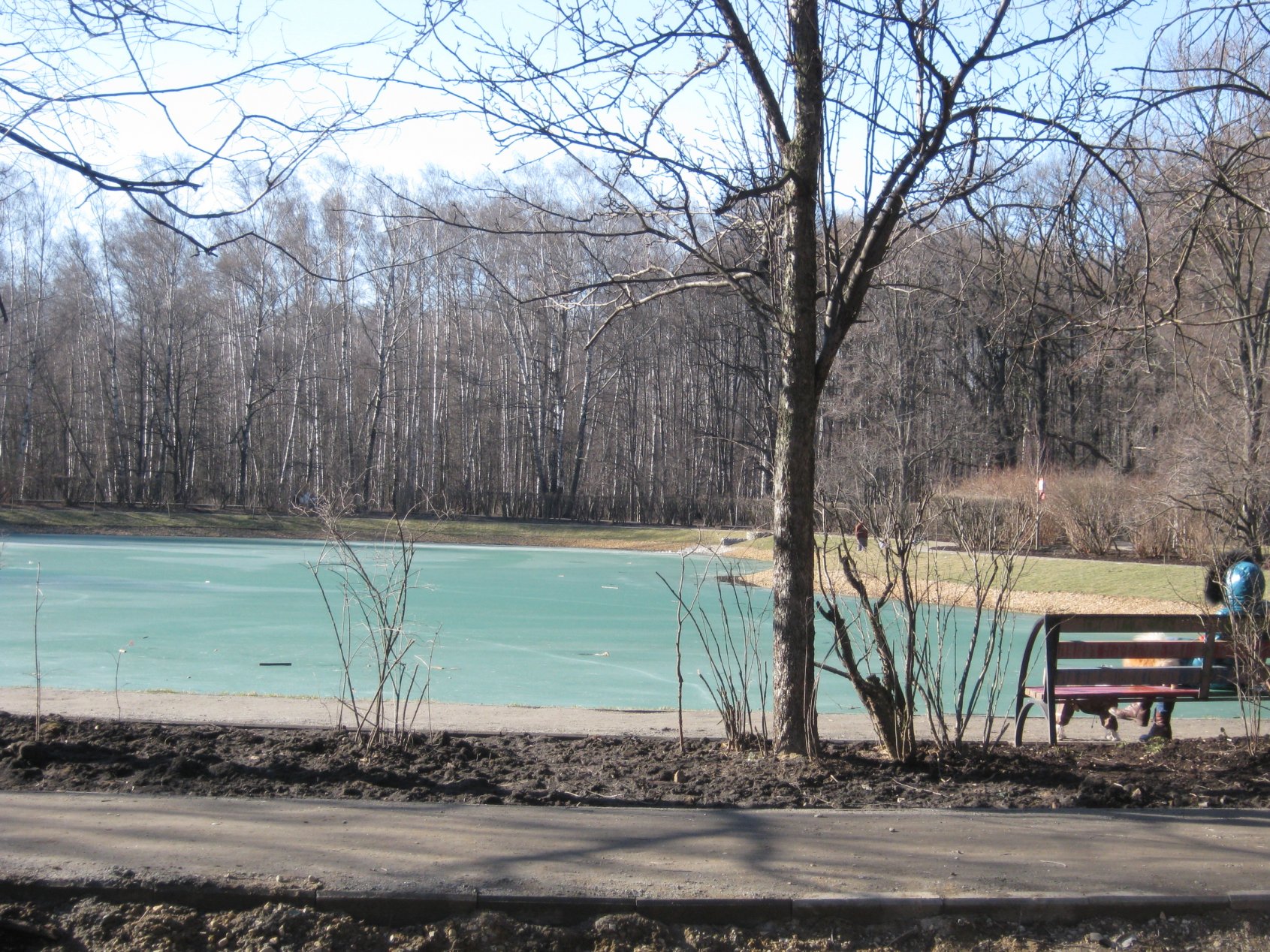Калина5, Надя, вот еще насчет пруда и Сокольников вспомнила :) Есть там такой пруд, Золотой называется. В прошлом году в марте с подружкой гуляли там и обратили внимание на цвет льда, он был ярко бирюзовый, такая красота. Мы так и не поняли, откуда такой цвет. Вот фото, но на нем не такой яркий лёд получился.