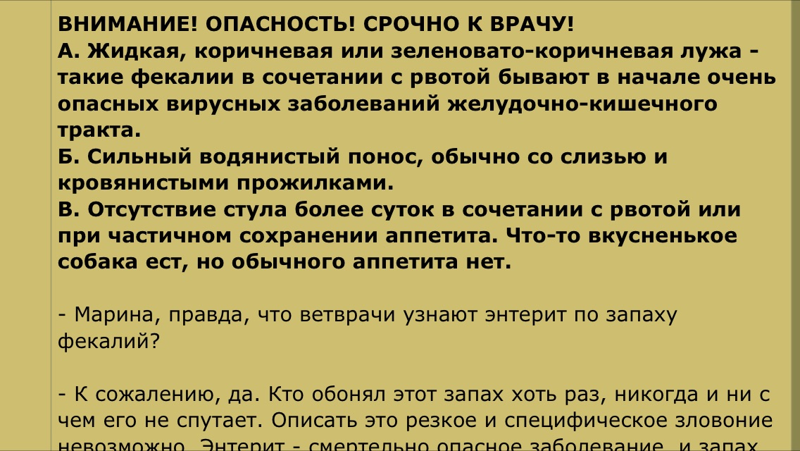 ))Когда-то, по-моему, Наталья Колесникова давала отличную ссылку на тему о собачьем кале. Вот не могу что-то найти ссылку, видать, изучив, я ее удалила. Но нашла несколько сделанных оттуда скринов, сейчас вставлю. |