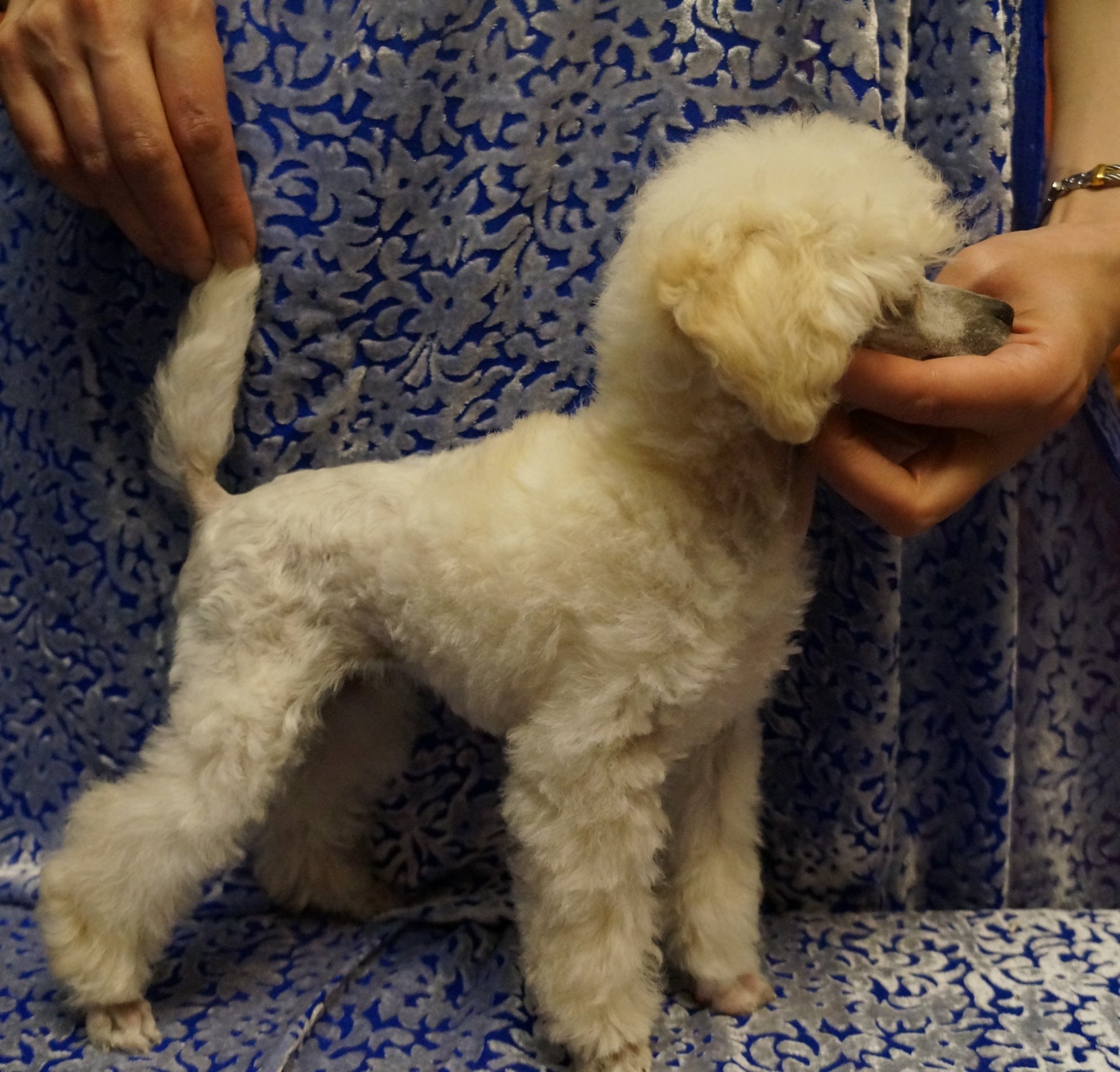 Won Best of breed baby and BISS Baby -3!!!! Judge Mach Lisbeth and Natalja Shalin. Cood like litle boy(Bragabout Jike Jake is I CH.Multy CH.BIS and BISS Winner+Nevskaja Zhemchuzhina Platina Parma is JGH.CH of Russia). Описание:оч. маленький белый кобель идеального телосложения имеет классическую голову.отл. пигмент .отл. движения.ОЧЕНЬ СЧАСТЛИВ В РИНГЕ. |
