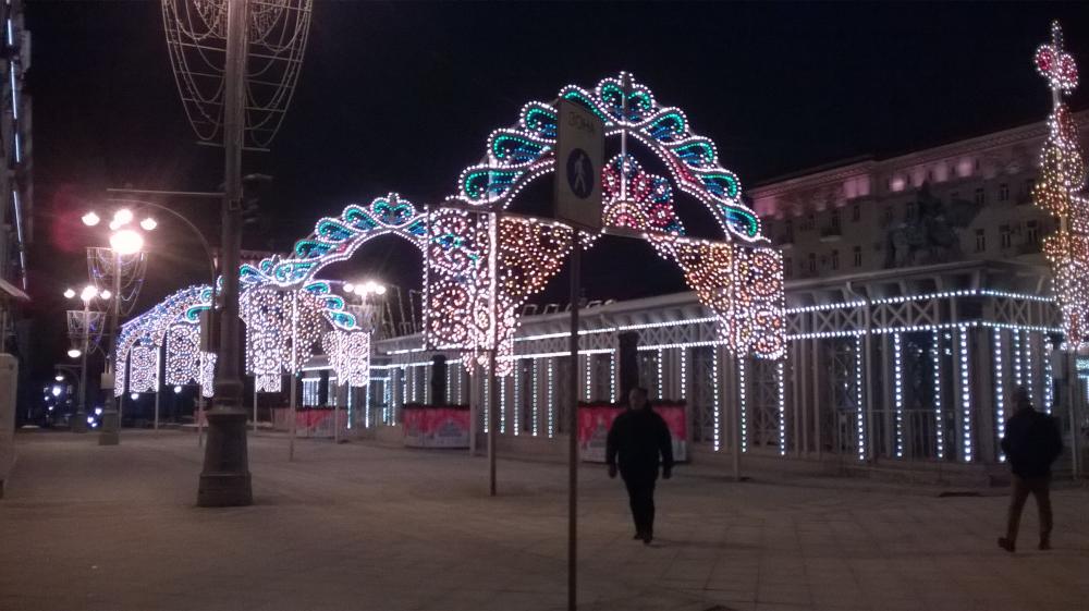Необыкновенно яркая и нарядная Тверская улица...