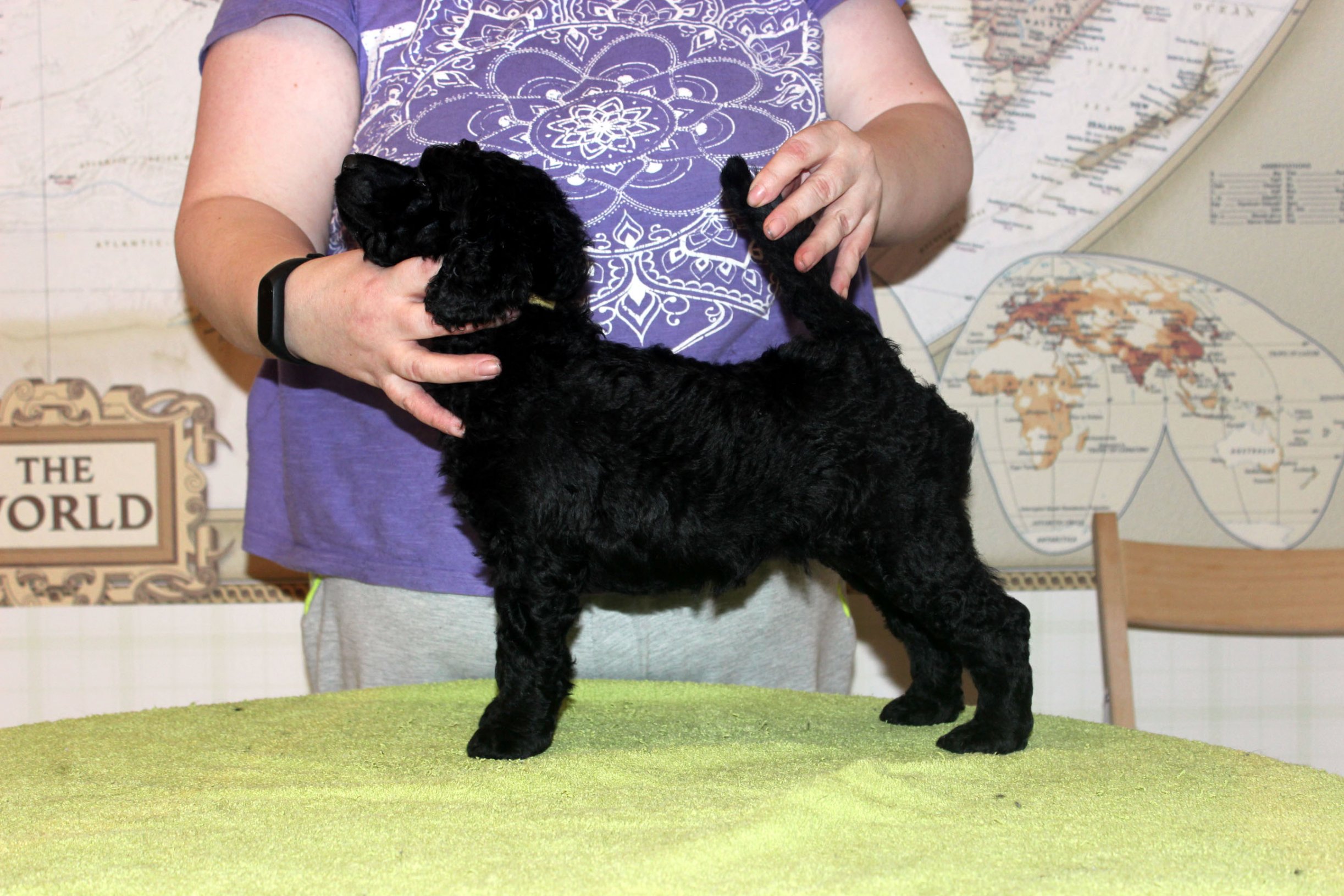 Уважаемые собаководы, вашему вниманию представляется следующая девчушка из отряда щенят-пуделят: Чилли (Chilly Pepper, оранжевая лента). Резвая и активная, сама не лезет в щенячьи конфликты, но легко может за себя постоять. И продолжает хитрить: её любимая игра-спрятаться где-нибудь, распластаться по полу (как будто её никто не видит) и тихо лежать, чтобы атаковать мимопроходящего щенка, или пелёнку, или хвост.. В этом вся наша Чилли. Конечно, она может покорять ринги конкурсов красоты, но большее её привлекают активные игры, аджилити так и манит её.