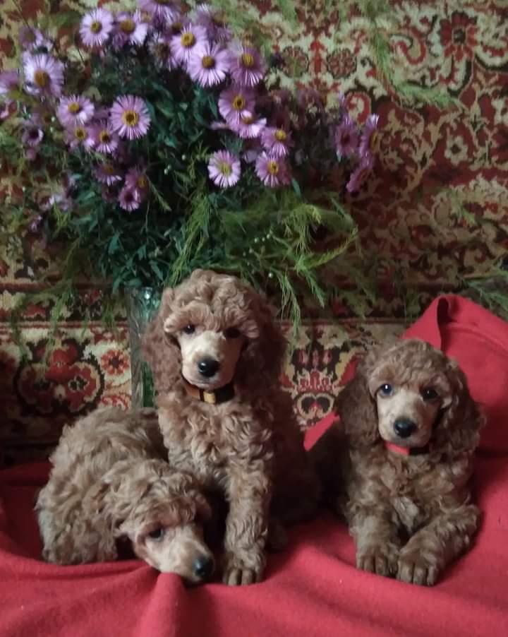 28.08.2018 родились щенки от пары:отец Челепеппер'с Орландо Блум, окрас красный, 42см ючр, чр, чнкп, гранд чемпион, Интер чемпион, тест prcd-PRA-N/N. Мать:Ансвел Офелия Санд, 38 см, абрикосовая, ючр, чр, чнкп, гранд чемпион, тест prcd-PRA-N/N. Два кобеля красного и абрикосового окрасов, и три суки красного окраса.