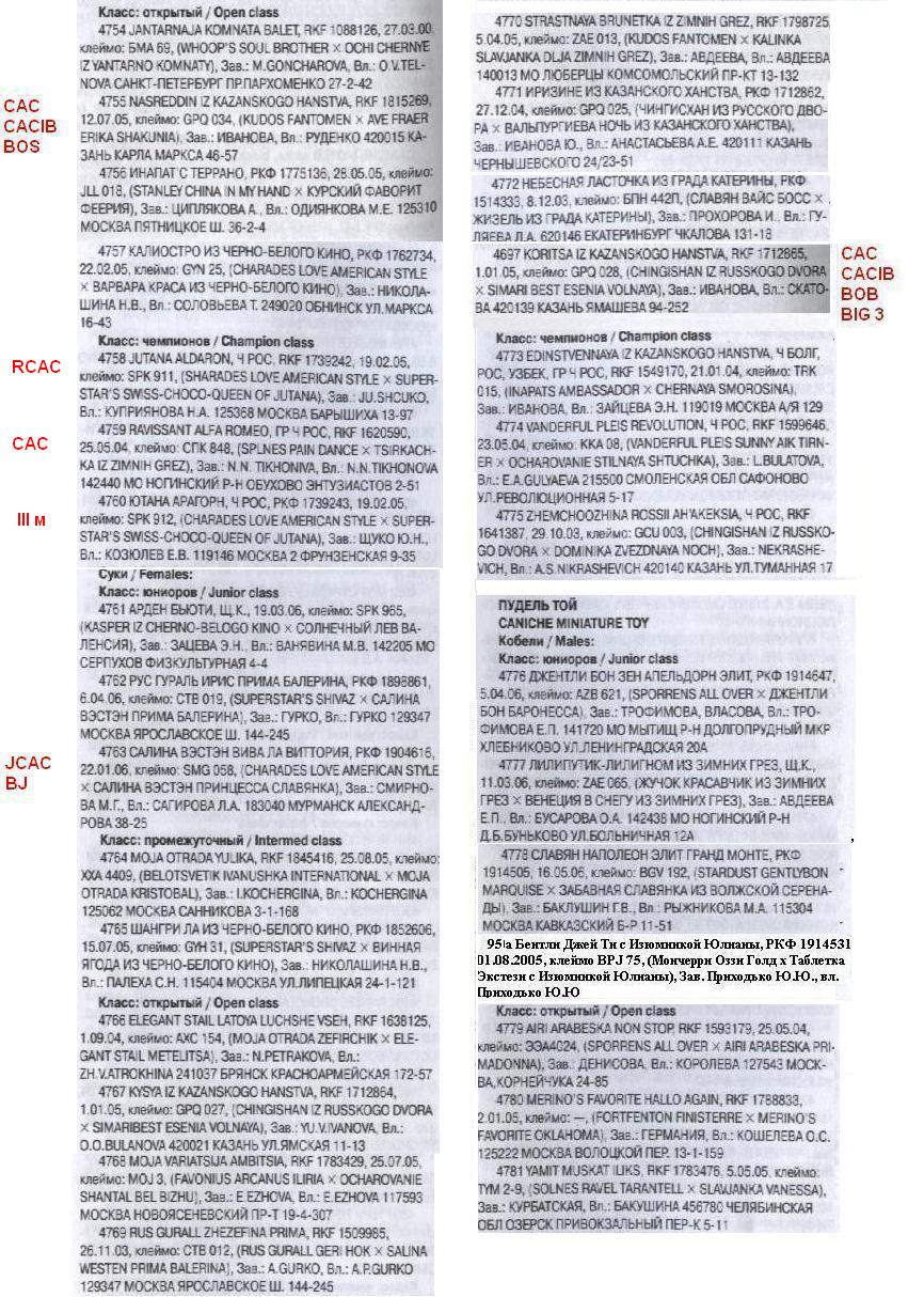 Вера, у нас тоже некоторые дополнения по каталогу малых в классике. Зазнобушка Тайная оба дня получила Res.Cacib, а Зорро оба дня Сас в открытом классе. Поправьте, пожалуйста!
