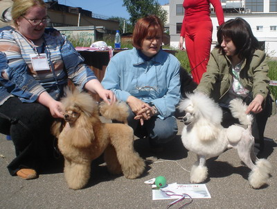 Выставка проходила у нас в полевых условиях (холод, дождь, под ногами песок), задержка ринга на 1,5 часа, описаний не давали вообще, а что творилось в Бестах...В общем как мы это пережили - не знаю! Но все равно наши пудели были на высоте, хотя их старательно задвигали