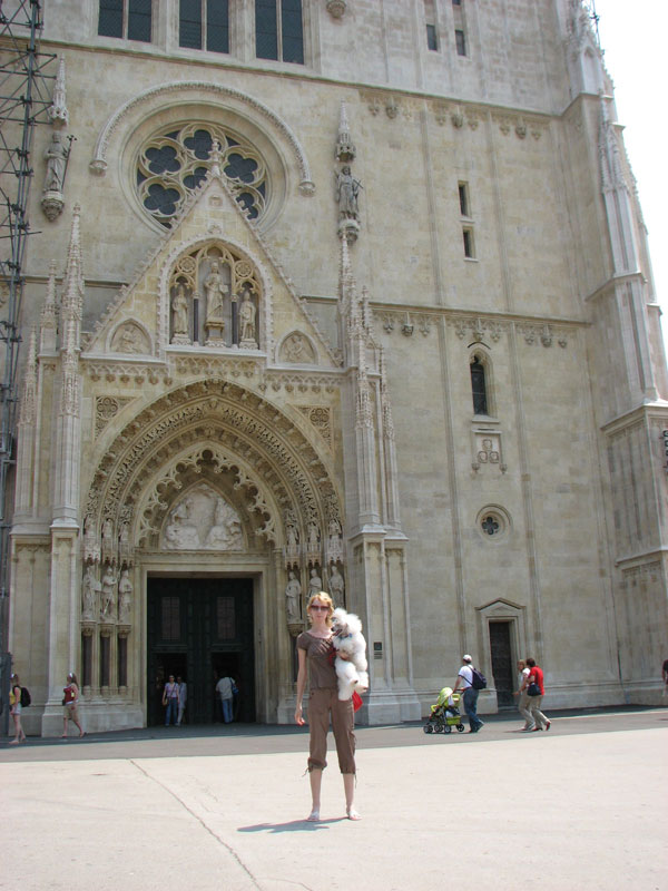 другие наши соотечественники тоже писали разные похожие опусы, так что все двери были увешаны..и ни один работник отеля не рискнул видимо сунуть нос в номера русских... мы с Бигги у собора..оч красиво..но внутрь увы..только бессобачные прошли) |