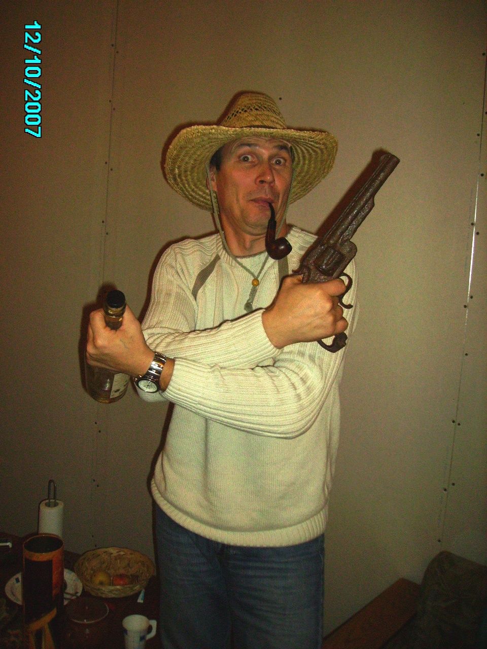 А, может, мужчина, который его держит, - второй Калашников?!! Может, он на спорные территории претендовать вздумает?!! Граница на замке!!!
