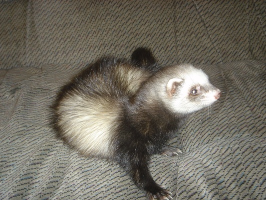 Хорек девочка, 9 месяцев, вместе с клеткой, поилкой, гамаком, она приучела к туалету, писает и какает в лоток в отдельный угол... внизу клетки... Не кусается, приученна к собакам!!! Если что, пишите в личку... |