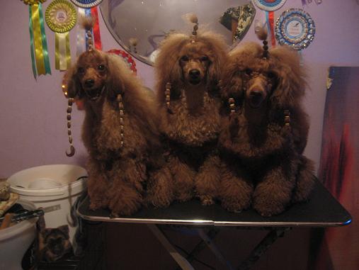 [B вот моя троица папа, сын и внучка - все в уши резиночках причём как потом выяснилось - возрастных каждой собаке на фотке возраст - ровно минус одна резинка [/B]
