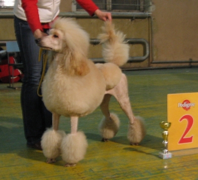 Обычный народ породу "пудель" воспринимает как что-то что можно на ручки взять:):):) Rococo, судья - мелкая, хендлер - тоже Они оба хорошо если 160 см роста... Собаку эту я видела на наших выставках - очень средняя для Америки/Канады собака - 25.5 инчей (64 см). Его дед - Del Zarzoso Fuego Fatuo ("Гордон") А как вам его цвет? Интересно, правда? _______________________________________