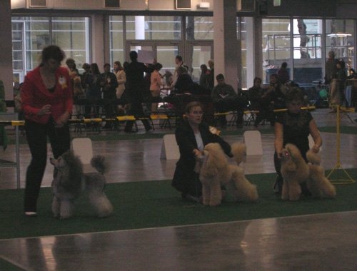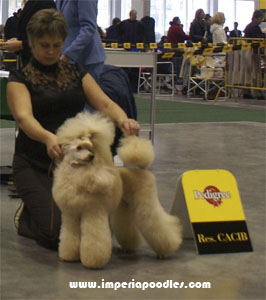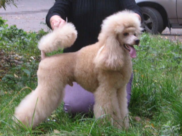 1. Собака на снимке не выглядит собранной, она излишне спокойна, излишне расслаблена. Огонёчку-бы чуток! 2.Наклон морды нормальный, совсем не обязательно, чтобы спинка носа была горизонтальной..У многих собак красиво свыглядит когда морда чуть-чуть опущена и тогда в шее появляется такой элегантный изгиб (если есть шея, конечно ).3.Плохо, когда собака отворачивает морду, вернее все время зациклена на хендлере. Приятней для эксперта когда собака чуть поворачивет морду к нему. А если, вдобавок, морда с хорошим выражением, и глазки горят хитрые - еще лучше! На этом фото собака вроде не отворачивается. Она смотрит куда-то перед собой. 4. Для оценки хвоста важно видеть его выход, как именно устроено место где позвонки крестца кончаются и начинаются хвостовые позвонки. Как бы удачно хендлер не корректировал постав хвоста, эксперт имеет право попросить его убрать руку, чтобы оценить естественный выход и постав. А при движении никто кроме самой собаки не может управлять ее хвостом. При движении он будет таким, какой есть на самом деле (если, конечно, там не поработал хирург). Вцелом, на фото очень породный, добротно скроенный, хорошо сложенный пудель, гармоничный, без излишеств в соотношениях длин костей и в углах их сочленений. Прекрасная форма и длина морды. Правильно посажены уши. Очень богатая шерсть, но объемы и пропорции прически немного тяжеловаты и простят собаку. Безупречный окрас. ![]() фото в посте 204. Чуть втянула шею. Сразу все пропорции поплыли.... И хвост, как мне кажется, можно было чуть свободней разрешить держать. Там отличный выход - вряд ли бы он сильно загнулся сам. фото в посте 205. В целом все ноги-руки нормально стоят. Даже шея вроде нормально. Думаю, что если бы пудель закрыл пасть, то такой поворот головы в сторону эксперта мог бы даже и выигрышным быть. Очень лицо симпатичное у этой собаки. Хорошее выражение. Но прическа и тут немного недоделана. _______________________________________
