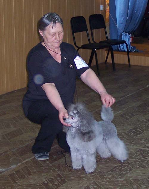 у меня нет ни одного фото, тк выставить десяток собак, при этом созвать всех остальных в ринг, а также выдать всем (ЛЮ, ВОВ) участникам бэста призы итак было реально свыше моих сил. Фотки с моно есть у Vitaa и Duchess - надеюсь, они дополнят картину. Условия проведения моно были максимально приближены по качеству к экстремальным, так что качество фот скорее всего не супер, но уж какие есть - всё лучше чем совсем ничего. Сибирские Язвы добавил(а) [date]1214152204[/date]: экспертизу проводила Ковалёва Татьяна. к сожалению нельзя сказать чтобы очень адекватно... Видимо пятилетний перерыв в судействе всё ж\е несколько сказался((( ТО Й П У Д Е Л Ь ОКРАС ЧЁРНЫЙ Кобель. Класс промежуточный 1. ЮНИВЕРСАЛ РОЙАЛ ФЛЭШ МЭДЖИК МИСТЕРИ (ИнтерЧ Делисс Серпантин Эльдорадо х ЧР Чечетка из Зимних Грёз) вл. Филоненко-Чоповская, Омск - оч. хор (типа - за хвост каралькой) Сука. Класс щенков 2. ЧАО-КАКАО ИЗ КАЗАНСКОГО ХАНСТВА (InterCh Чингихан из Русского Двора х GrandCH Авэ Фрайер Ерика Шалунья) зав. Иванова, вл. Филоненко-Чоповская, Омск - ЛЩ выставки Сука. Класс промежуточный 3. СЛАВЯНКА СМУГЛЯНКА (InterCh Dalin On My Good Times х ЧР Славянка Фарфала ди Нотте) зав. Баклушин, вл. Леонтьева, Омск - КЧК ВОВ 4я в тоях ОКРАС КОРИЧНЕВЫЙ Кобель. Класс чемпионов 4. Чемпион России, 2хКЧК DE IMPERIUM AURI ZEFIRO TROPICALE 07.03.07., RKF 1961662, (InterCh Sharades Love American Style x Великолепный Пудель Эллис) зав. Сутуева де Дюранд, вл. Коневы, Новосибирск - КЧК, ВОВ, Лучший Той Сука. Класс промежуточный 5. GLAMURNAYA SHTUCHKA IZ SOZVEZDIJA DEVY (InterCh Sharades Love American Style x GrandCH Steysi Iz Sozvezdija Devy) зав. и вл. Коневы, Новосибирск - КЧК ЛС ОКРАС СЕРЕБРИСТЫЙ Сука. Класс юниоров 6. СЕРЕБРЯНЫЙ ВЕК БРИЛЛИАНТ ЛИТЛ СТАР (ЧР Серебряный Век Лакомый Кусочек х ЧР Серебряный Век Единственная Моя) зав. Старчак Е., вл. Захарова Н, Омск - ЮКЧК, ЛЮ, ВОВ, 3я в тоях ОКРАС АБРИКОСОВЫЙ Кобель. Класс юниоров 7. АМБЕРС ФЭНТАЗИ АМЕРИКАН БОЙ (ГрандЧ Stardust Gently Bon Markqise x ГрандЧ Амберс Фэнтези) зав. Алина-Шабуцкая, вл. Зюбанова И. А. Томск - ЮКЧК, ЛЮ, ВОВ 2ой в тоях Сука. Класс юниоров 8. АМБЕРС ФЭНТАЗИ АМАЛИЯ 03.03.07., JUA 170, РКФ 2084169, (ГрандЧ Stardust Gently Bon Markqise x ГрандЧ Амберс Фэнтези) зав. Алина-Шабуцкая, вл. Луканов А. В., Новосибирск - ЮКЧК ОКРАС КРАСНЫЙ Кобель. Класс юниоров 9. АМБЕРС ФЭНТАЗИ АЛЛЕГРО (ГрандЧ Stardust Gently Bon Markqise x ГрандЧ Амберс Фэнтези) зав. Алина-Шабуцкая, вл. Вервина, Томск - ??? Сибирские Язвы добавил(а) [date]1214152752[/date]: М И Н И А Т Ю Р Н Ы Й П У Д Е Л Ь ОКРАС ЧЁРНЫЙ Кобель. Класс чемпионов 10. SLAVYAN ZHIGOLO SHER AMI (CH Slavyan Karden x Slavyanka Farfalla Di Notte) зав. Баклушин, вл. Бурова С, Тюмень - КЧК, ЛК Сука. Класс победителей 11. Юный ЧР, Чемпион Чемпион России, Каз., АНКОР, РФСС, 8хСАС, КЧК AKVA VITAE ALISA LISA 17(Интерч Toyway Chain King x Zhivchik Anutka Yasnye Glazki) зав. Кириенко, вл. Захарова Н, Омск - КЧК, ВОВ, 2я в миниках ОКРАС БЕЛЫЙ Кобель. Класс щенков 12. ГЛАМУР ДОЛЛС ПОКЕР 08.08.07, щ\к, (ЧР Джек Пот из Зимних Грёз х Умильная Мордашка из Зимних Грёз) зав. Мукомела, вл. Чернышова Е, Омск - персп. ОКРАС КОРИЧНЕВЫЙ Кобель. Класс промежуточный 13. ОЧИ ЧЁРНЫЕ МАЛЫШ ДЭНДИ 31.08.06., AUF 4926, РКФ 1961627, (Ютана Алдарон х Госпожа Моей Души) зав. Внукова, вл. Мельникова В. И., Северск - КЧК, ВОВ 1 в миниках 3 в финале ОКРАС СЕРЕБРИСТЫЙ Кобель. Класс победителей 14. 2хСАС МЭДЖИК МИСТЕРИ УНИВЕРСУМ (ГрандЧ Очарование Новый Фаворит х ГрандЧ Невский Дом Сьюзи) зав. и вл. Филоненко-Чоповская, Омск - КЧК, ВОВ 3 в миниках Сука. Класс открытый 15. МОНЕТКА СЕРЕБРЯНАЯ (ИнтерЧ Айри Арабеска Бластер х ГрандЧ Василиса Прекрасная) зав. и вл. Тищенко, Новосибирск - КЧК, ЛС ОКР