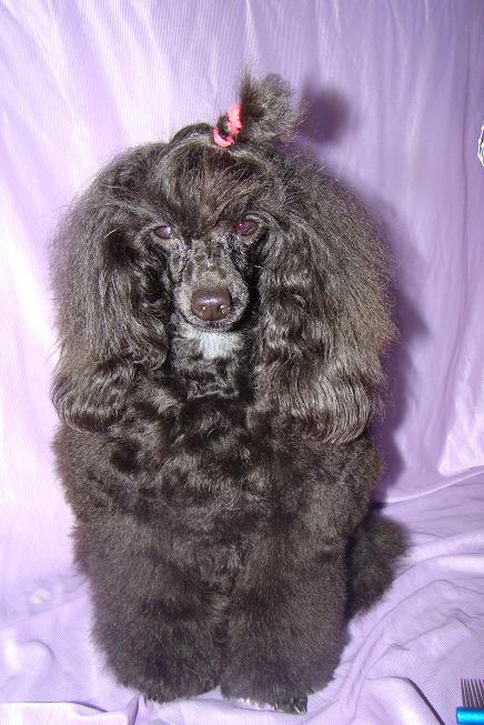 ...на фотах этого не видно,но я в жизни не встречала такого густо косматого лохмато-кучерявого щена............Маркина мне доказывала,что она в Баклушинского Томаса,а мне определенно кажется,что в другого деда